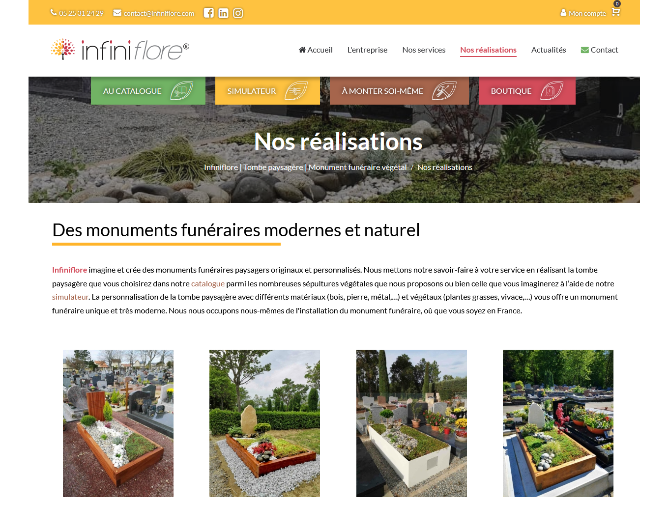 Infiniflore, création et pose de tombe paysagère. Avec développement d'un simulateur de monument personnalisable.