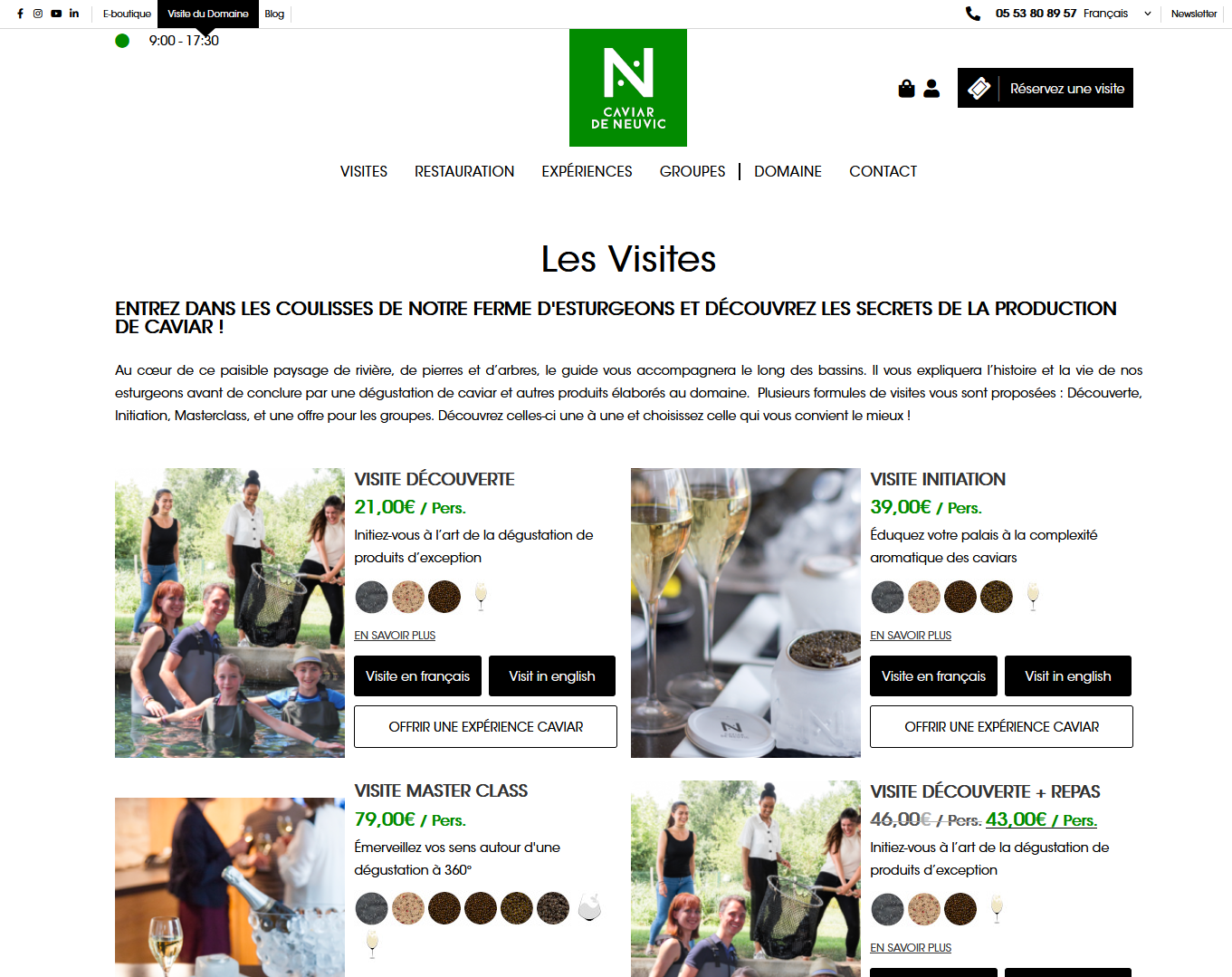 Visitez le producteur de caviar basé à Neuvic. Système de réservations avec personnalisation et multilingue.